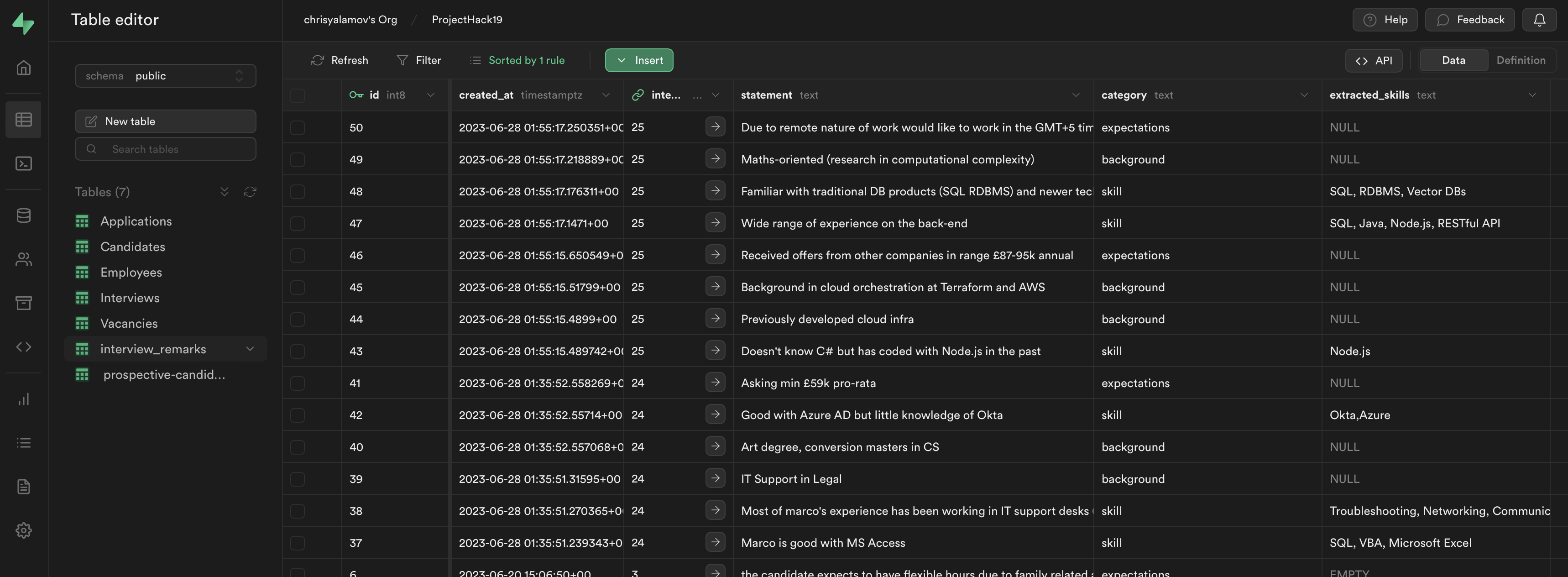 By using a language model, the platform was able to extract keywords regarding the applicant's relevant skills, based on the interviewers' notes. This information is searchable— when a recruiter creates a new job listing, the platform suggests suitable candidates based on the required skills.
